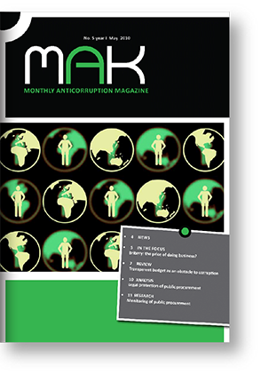 You have the latest issue of the Anti-Corruption newsletter (MAK). First of all we wish to thank to all of those who responded to our poll by which we wish to hear how satisfied you are with our newsletter and collect your proposals, suggestions for its further development. We are also reminding and kindly asking those who failed to respond, to do that as soon as possible, as your opinions are of vital importance for an improvement of our performance. We shall present your proposals and suggestions in the next issue. We are now carefully reviewing your ideas to be able to immediately apply them in the next issues’ articles.