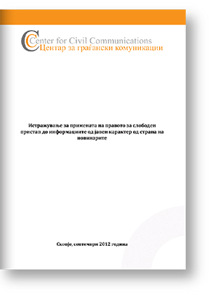 Инаку, споменатото истражување и дебатите со новинарите се дел од проектот „Пристапот до информации – Извор за поквалитетно информирање“, кој го спроведува Центарот за граѓански комуникации во партнерство со Access Info Europe од Шпанија и БИРН – Македонија, а е финансиран од Европската Унија.
