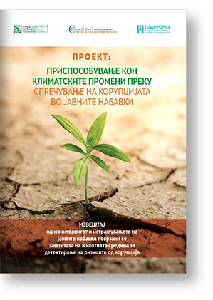 Истражувањето, проследено со Документ за јавни политики кои содржи предлози за поголема примена на зелените набавки, се изготвени во рамките на проектот „Приспособување кон климатските промени преку спречување на корупцијата во јавните набавки“. Проектот го спроведуваат Центарот за граѓански комуникации и Платформата на граѓански организации за борба против корупцијата, а е финансиски поддржан од Фондацијата Отворено општество Македонија.