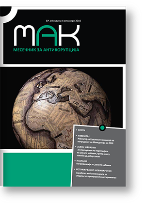 Во овој број на месечникот, во целост ги пренесуваме деловите за антикорупција и јавни набавки од последниот Извештај на Европската комисија за напредокот на Македонија во подготовките за членство во Европската Унија. И кај двете области Европската комисија констатира напредок, но наведува и дека корупцијата е распространета и продолжува да биде сериозен проблем. Кај јавните набавки главно се повторуваат ланските констатации, со тоа што годинава особено се истакнува нискиот капацитет на јавната администрација во оваа област и потребата од зајакнување на системот за правни лекови во јавните набавки.