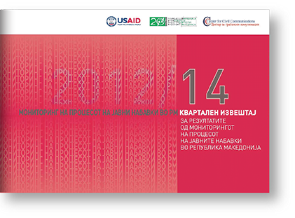СКОПЈЕ, 18 октомври 2012 година – Центарот за граѓански комуникации денеска ги објавува резултатите од редовниот мониторинг на јавните набавки во земјава, за периодот од април до јуни 2012 година. Констатирани се, меѓу другите, следниве клучни наоди: