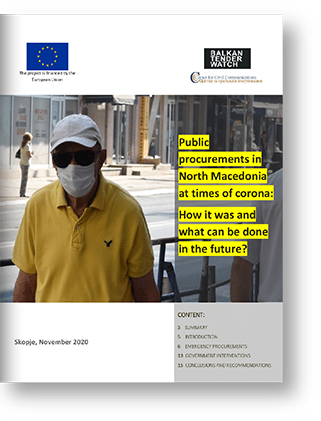 Immediately after it became evident that North Macedonia, and the entire world, is under the threat of infection spread with the new coronavirus, state institutions began to procure protection gear. It was a matter of unplanned public procurements that needed to be realized urgently and without any delay, whereby instead of regular procurement procedures the state institutions started organizing direct negotiation procedures without previous announcement of call for bids, pursuant to Article 55, paragraph (1)d of the Law on Public Procurements1: “…in cases when, due to utter urgency that has emerged as a result of events which the contracting authority could not have anticipated, the deadlines for other procedures cannot be applied. Circumstances that justify the utter urgency must be such as not to be attributable to the contracting authority.”