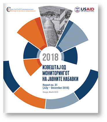 Скопје, 22 мај 2019 година – Центарот за граѓански комуникации го објави извештајот од мониторингот на јавните набавки во земјата за периодот јули-декември 2018 година, како и резултатите од анкетата на фирмите за нивното искуство при учеството на тендерите.