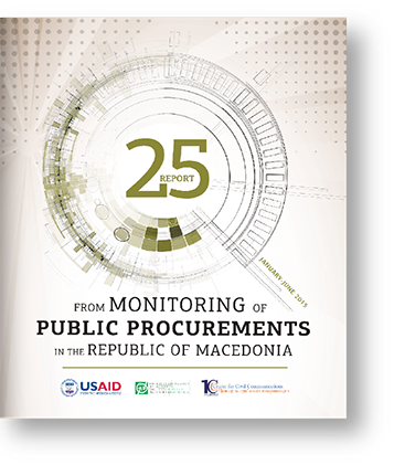 In the period November 2008 – June 2014, the monitoring activities were implemented on a quarterly monitoring sample comprised of randomly selected public procurement procedures; however, starting from the second half of 2014 the monitoring sample is defined on semi-annual level and includes random selection of 60 public procurement procedures.