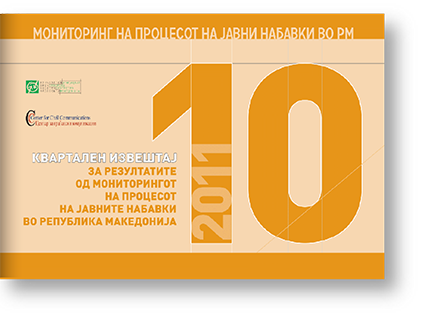 Анализата на процесот на јавни набавки во РМ се прави врз основа на мониторинг на случајно избрани постапки за јавни набавки (по 40 на секое тримесечје). Мониторингот започнува од објавите на повиците во „Службен весник“, преку присуство на јавните отворања, до собирање податоци за текот на постапката преку длабински интервјуа и структурирани прашалници кои им се доставуваат на економските оператори, како и од податоците собрани од договорните органи преку барања за пристап до информации од јавен карактер.