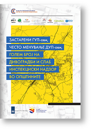Истражувањето Застарени ГУП-ови, често менување ДУП-ови и голем број дивоградби кое открива дека доминантен дел од општините имаат генерални урбанистички планови (ГУП) чија формална важност е истечена. За разлика од застарените ГУП-ови, во општините што беа предмет на ова истражување, за пет години се донесени многу ДУП-ови и направени се многу нивни измени.